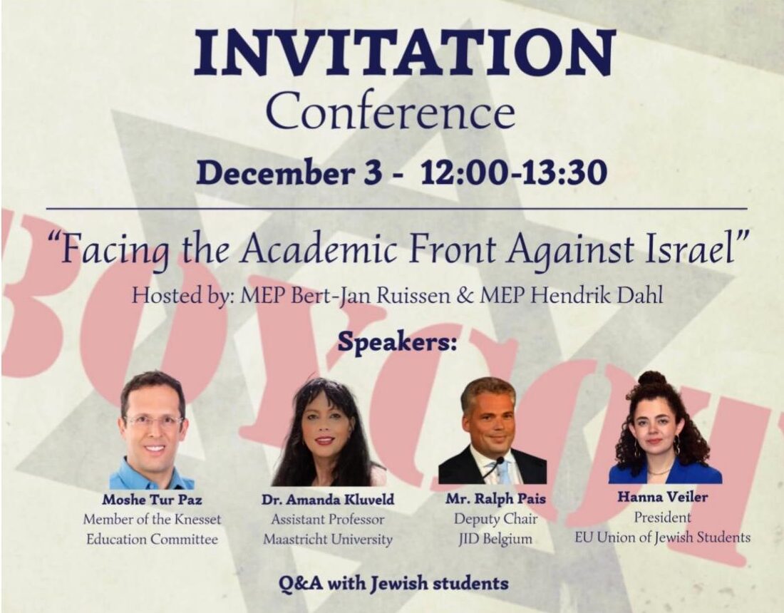 Op 3 december vond in Brussel de conferentie “Facing the Academic Front Against Israel” plaats. José was te gast bij deze conferentie. Tevens heeft José ,mede namens Maaike, een exemplaar van het rapport overhandigd aan deze  Europarlementariër van de SGP.